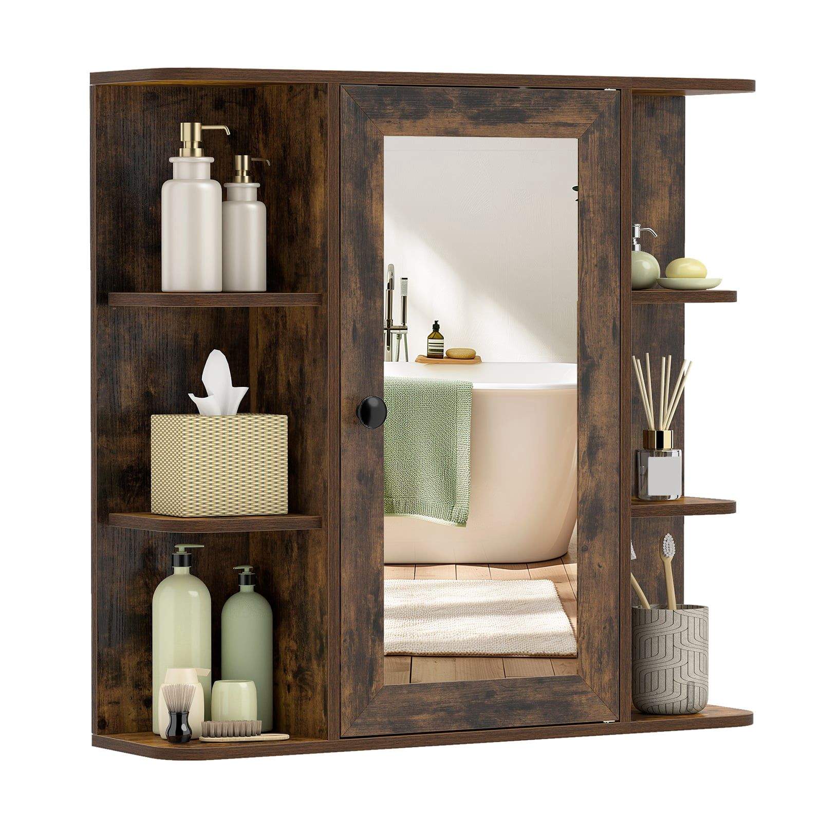Spegelskåp i badrum – Rustikt brunt, gott om förvaring
