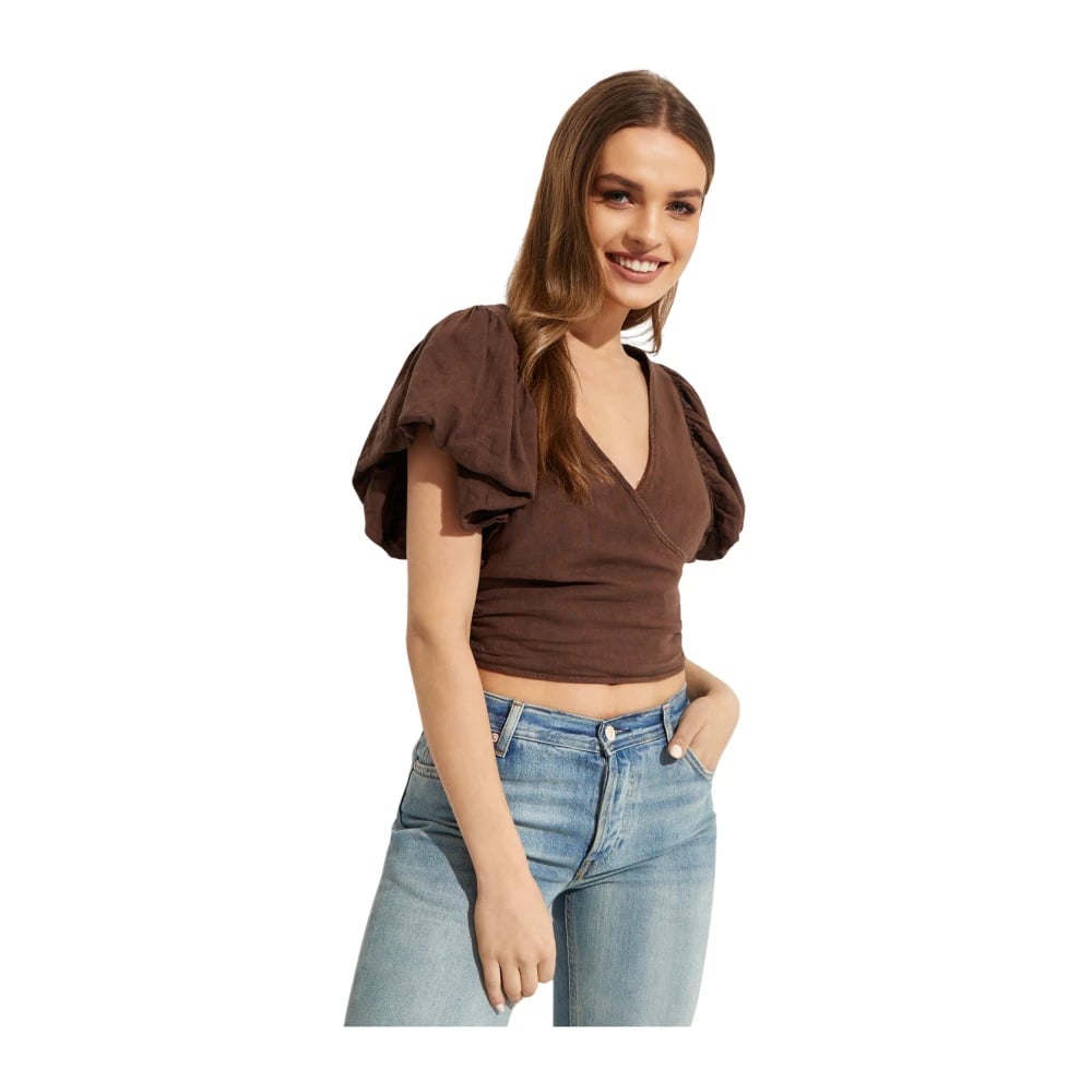 Free People, Blusar & Skjortor , Dam, S, Linne, Brun puffärmstopp
