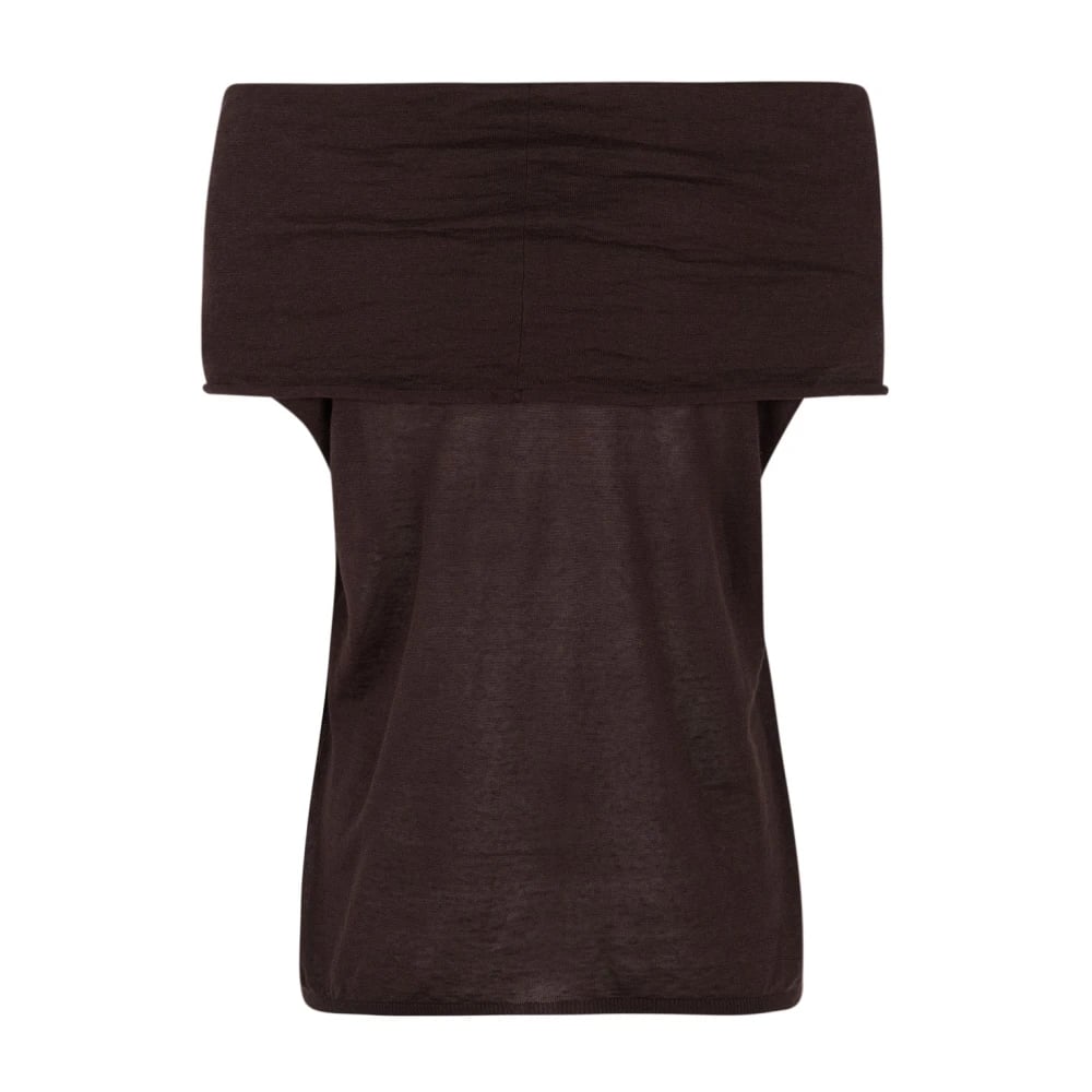 Cortana, Stickade Tröjor , Dam, 2Xs, Linne, Brun Linne Off-Shoulder Stickad Topp