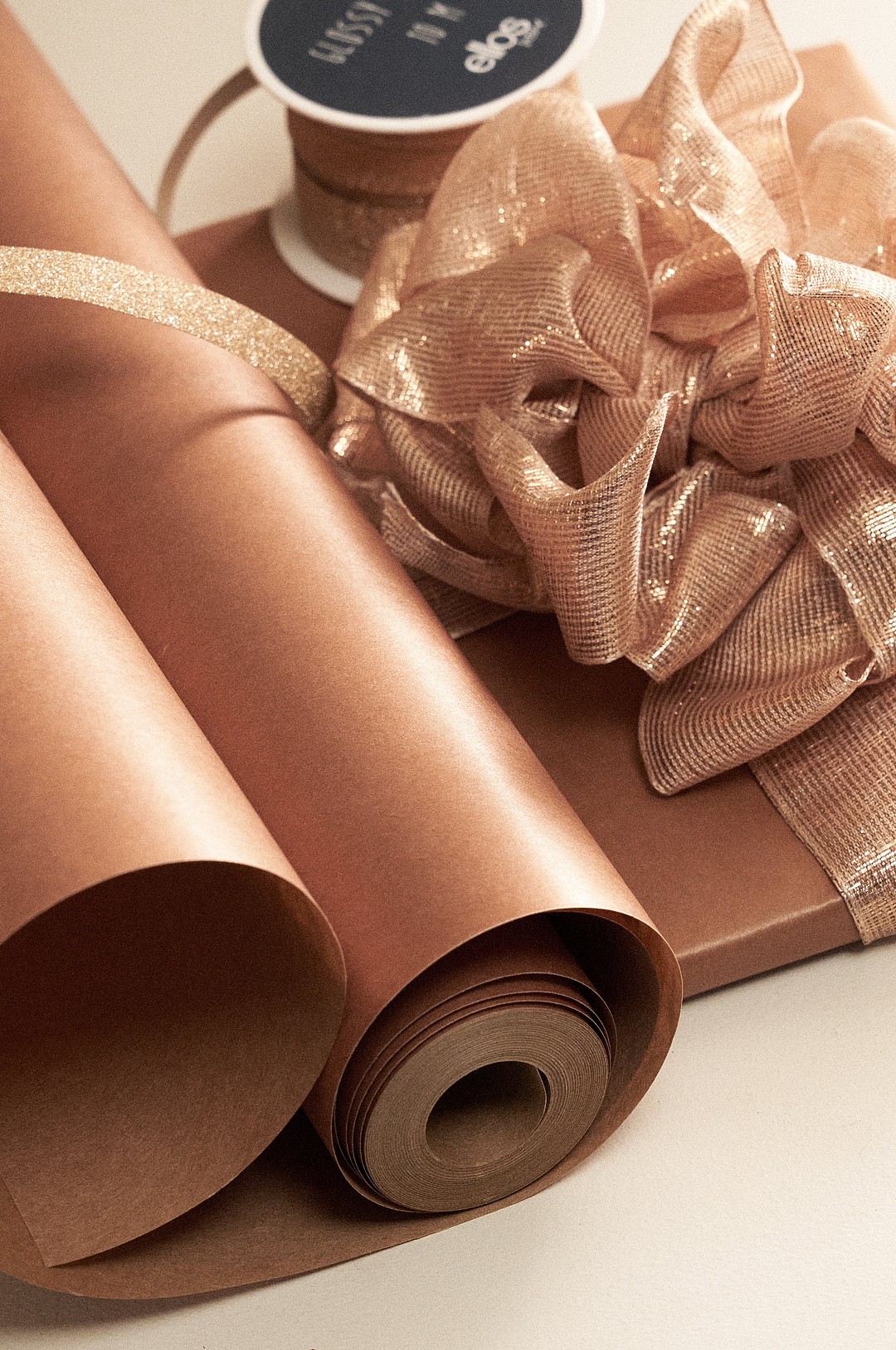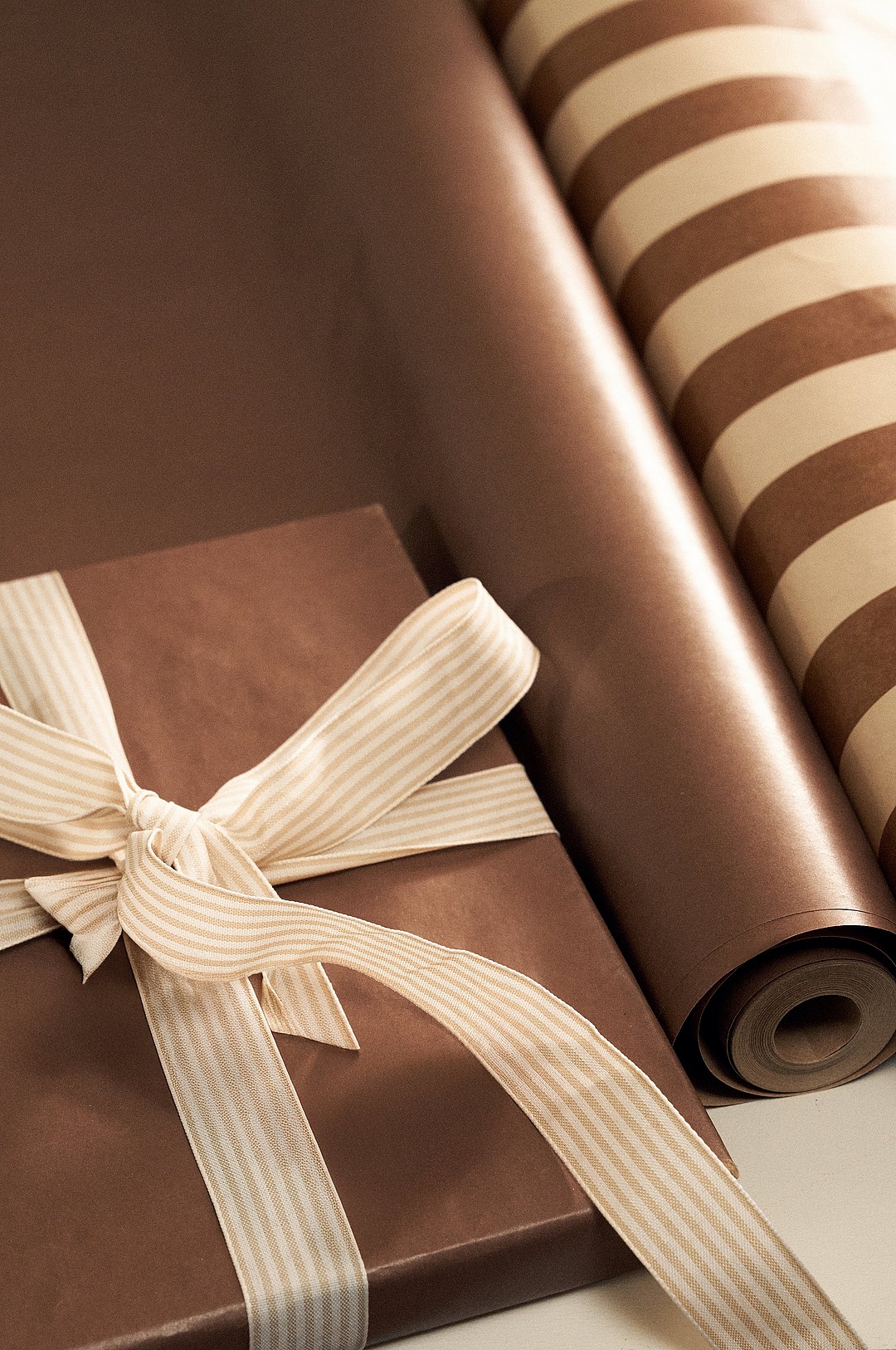 DITTE presentpapper - längd 10 meter Kanelbrun/guld