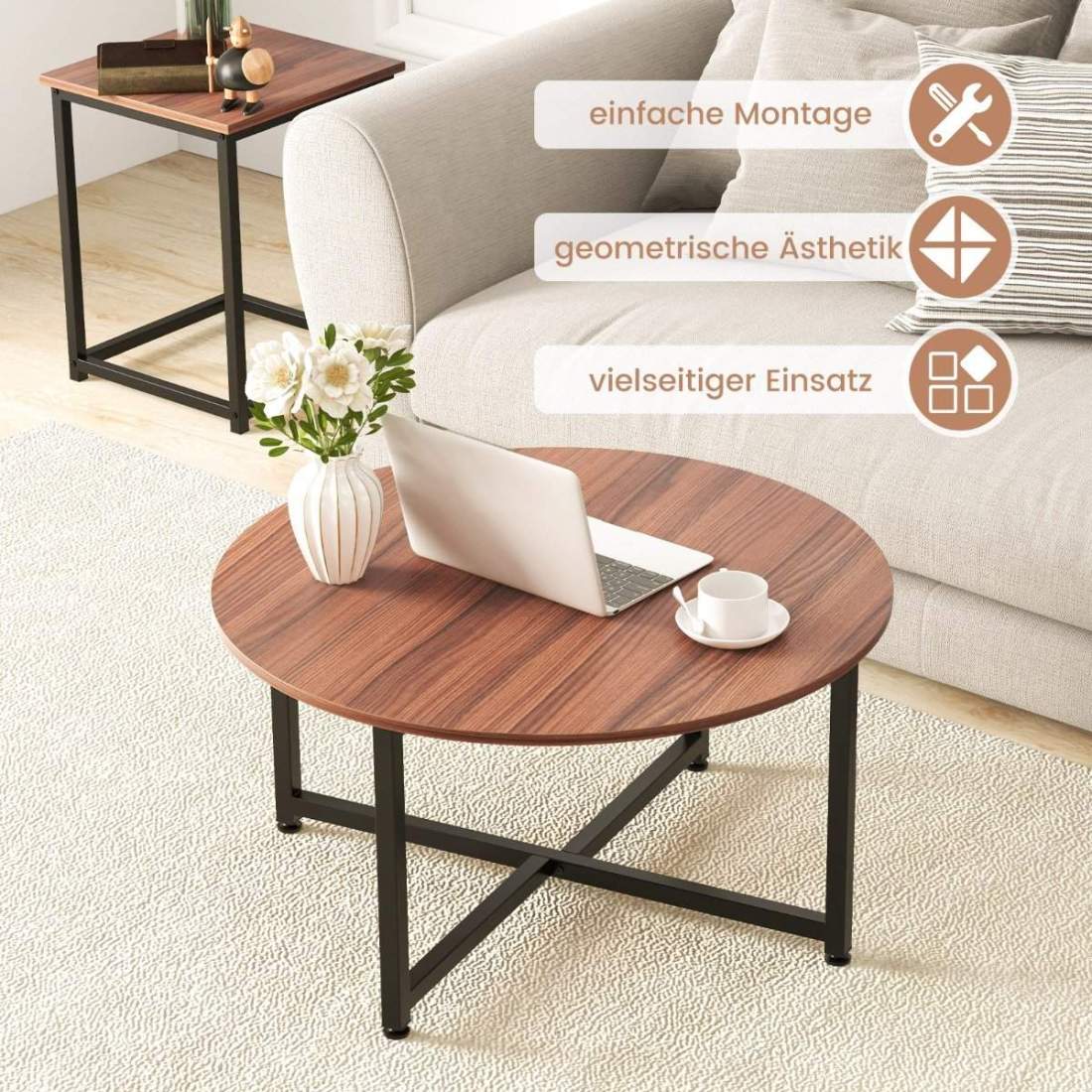 Brunt runt soffbord
