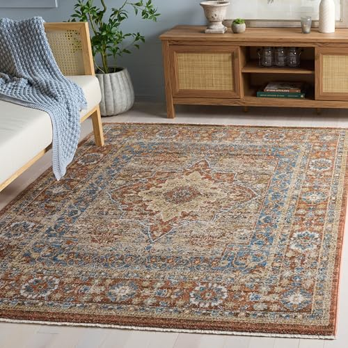 Safavieh traditionell sliten matta för vardagsrum, matsal, sovrum – Bijar kollektion, kort lugg, i brunt och rost, 91 x 152 cm