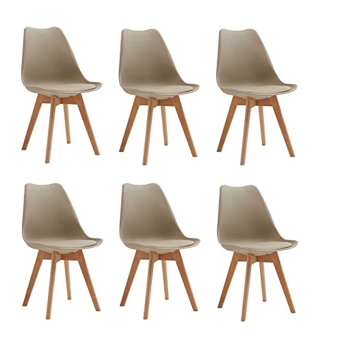BenyLed Set med 6 moderna tulpan matsalsstolar med vadderad sits och bokträben, perfekt för matsal, kök, vardagsrum, sovrum, brun