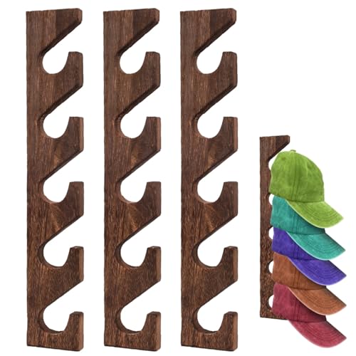 3 st hattställ för basebollkepsar, väggmonterad trähatt förvaring organiseringshängare, vägg vertikal hatthållare kepsar visningsställ för garderob dörr sovrum vardagsrum entré tvätt (brunt trä)