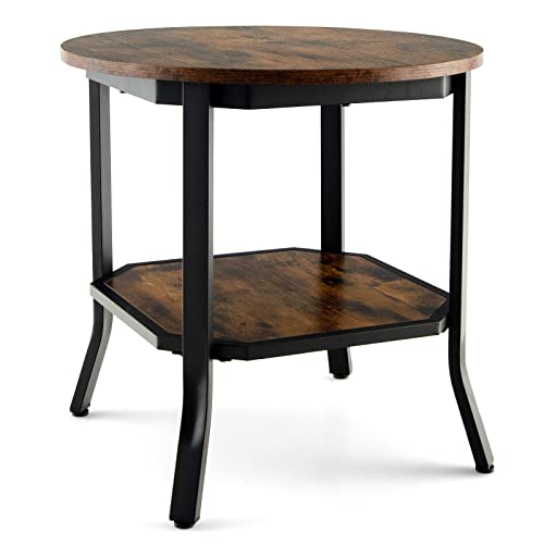 GOPLUS runt soffbord med förvaringsutrymme, sidobord med 2 våningar med öppen hylla och stålben, soffbord med rymlig bordsskiva för vardagsrum sovrum, lätt att montera, brunt