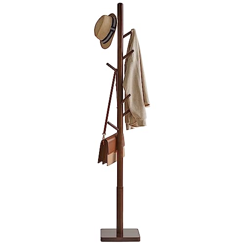 YMYNY Garderobsställ i massivt trä, klädställ med 8 krokar, i trädform design, höjd 176 cm, för väska, kläder, vardagsrum, sovrum, brun HCR002H