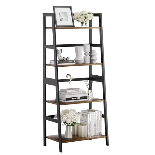 HITNET Steghylla, Bokhylla med 4 Hyllor, Fristående Badrumsförvaringshyllor med Bamburam för Vardagsrum, Hemmakontor, Sovrum (Rustikt brunt och svart)
