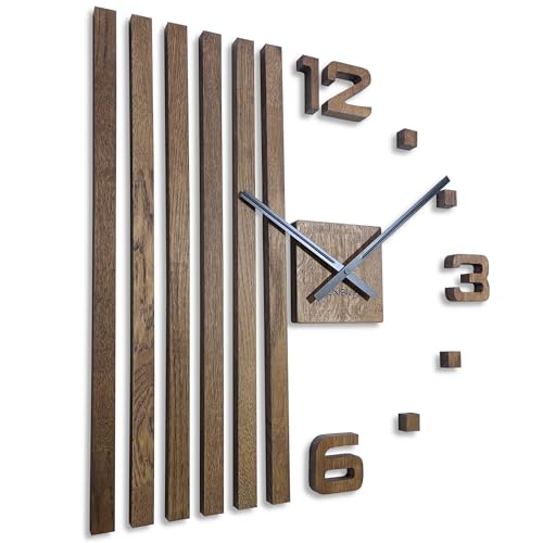 FLEXISTYLE 3D-väggklocka, med eklameller, gör-det-själv-montering, stor väggklocka, 60 cm, modern design, eko-väggklocka, dekorationsklocka för kontor, vardagsrum och sovrum (brun, svarta visare)