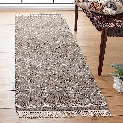 Safavieh marockansk boho tribal inomhus plattvävd löpare områdesmatta, naturlig Kilim kollektion, NKM316, i brunt/elfenben, 69 x 244 cm för vardagsrum, sovrum eller valfritt inomhusutrymme