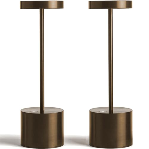 Uppgraderad sladdlös bordslampa, 5000mAh uppladdningsbart batteri, IP54 vattentät, aluminiumlegering, 3 färglägen Steglös dimning upp till 40 timmar, för buffé/parmiddag/restaurang/sovrum, 2 Brunt