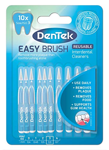 DenTek Easy Brush mellanrumsborstar, ISO3/0,6 mm, för att ta bort mat och plack mellan tänderna, 10 stycken