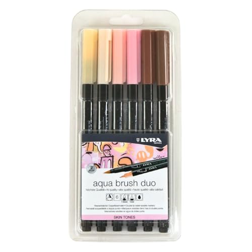 LYRA Aqua Brush Duo, Fine Art Brush Marker Set, Dual Tip, 6 blandade hudtonfärger, vattenlösliga pennor, perfekt för proffs och studenter