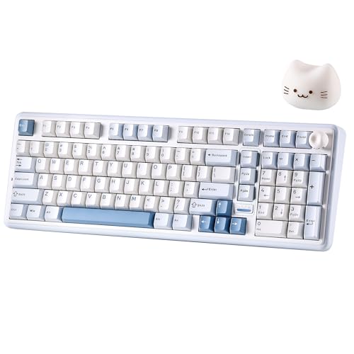 YUNZII B98 PRO QMK/VIA Trådlöst Mekaniskt Speltangentbord, 96% Layout med Numerisk Tangentbord, BT/2.4G/USB-C, Hot Swappable, RGB Bakgrundsbelysning (Blue, Milk V2 Linear Switch)