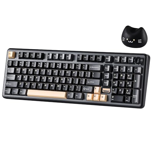 RK ROYAL KLUDGE L98 trådlöst mekaniskt tangentbord med vänsterhänt uthpaw designnummer och hot swappable knopp, tri-läge 95 % tangentbord BT/2.4G/USB-C, Pro-programvara, Gasket Mount, massivt 8 000