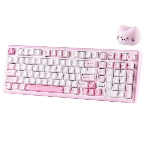 YUNZII B98 PRO QMK/VIA Trådlöst Mekaniskt Speltangentbord, 96% Layout med Numerisk Tangentbord, BT/2.4G/USB-C, Hot Swappable, RGB Bakgrundsbelysning (Pink, Candy Linear Switch)