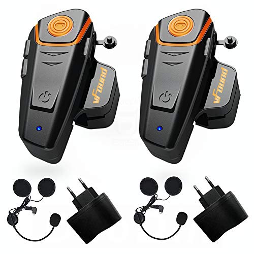 vFound BT-S2 1000 m Bluetooth-headset vattentät motorcykel motorcykelhjälm intercom intercom för 2 eller 3 åkare och ljud för Walkie Talkie GPS handsfree MP3-spelare FM-radio (2-pack)