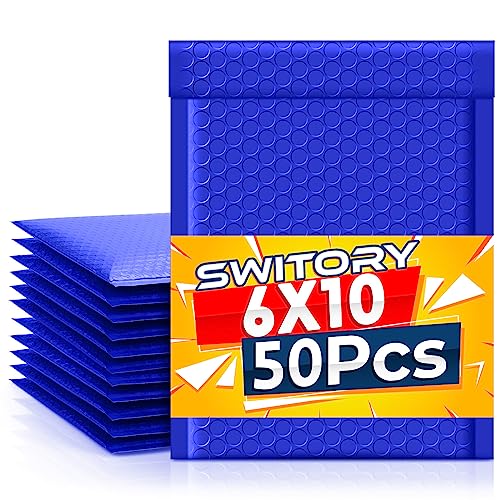 Switory Bubbelkuvert i A5-format, 50 stycken, 15,3 cm x 22,9 cm, vadderade bubbelkuvert i polyeten, fodrade kuvert, självförsegling, för förpackning (blå)