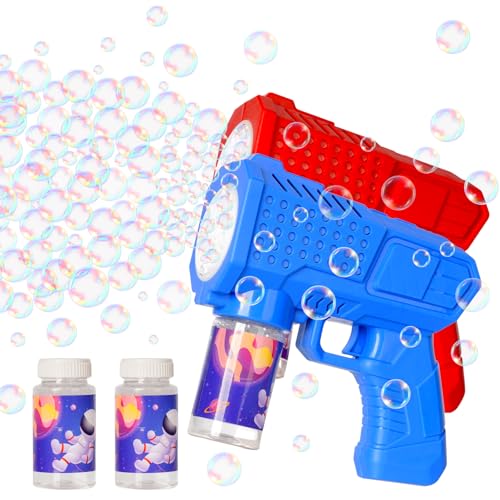 Set med 2 stycken tvålbubbelpistoler, barn tvålbubbelmaskin, automatisk tvålbubblor bubblor bubbelmaskin, tvålbubblor maskin för barn skjutleksak sommar temafest (blå + röd)