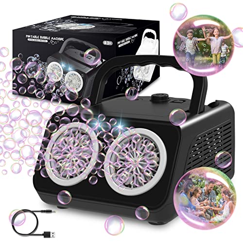 Bubbelmaskin, bärbar uppladdningsbar bubbeltillverkare leksak för barn, LED-ljus, 500 ml automatisk bubbelfläkt för 3, 4, 5, 6 år gamla småbarn, flickor, pojkar, gåvor, utomhusfest