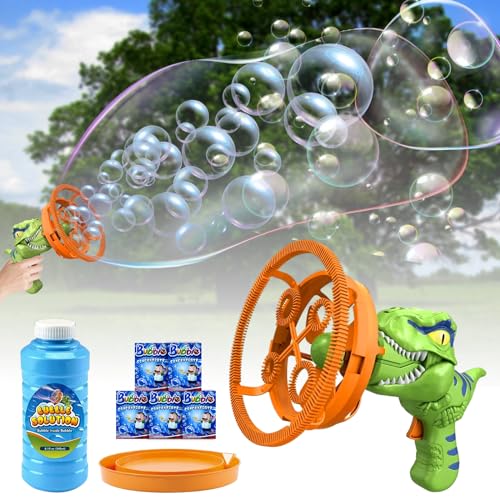 Bubbelmaskin, dinosauriebubbelpistol för barn, elektrisk bubbelblåsare bubbla i bubbla, bärbar bubbelblås med bubbellösning, automatisk bubbelmaskin, utomhusleksaker för bröllop, trädgård, fest (grön)