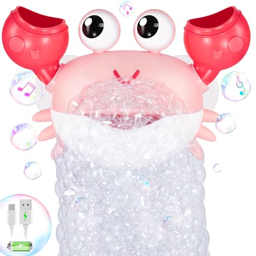 Gigilli Crab Baby badleksak, uppladdningsbar badkar bubbelmaskin automatisk dusch, badkar, bubbelmaskin med musik badleksak för barn 6–12 12–18 månader 1–3 4–8 pojkar