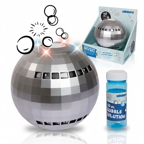 alldoro 60619 LED tvålbubbelmaskin diskokula, automatisk bubbelmaskin med ljus, inkl. 50 ml vätska, för barn från 3 år