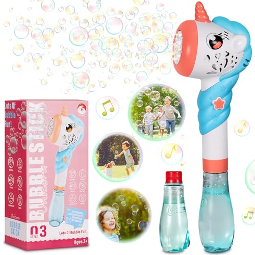 Bubbelmaskin, enhörning, bärbar, automatiska bubbeltillverkare för barn, elektrisk bubbelstav med ljus/bubbellösning/batteridriven för fest, bröllop, utomhus, småbarn, trädgårdsleksaker