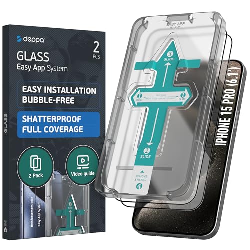 Deppa [2 Pack] Skärmskydd för iPhone 15 Pro (6.1') Screen Protector Härdat Glas Full täckning med Enkel [Bubble Free] Installationskit - [Fodralkompatibel]