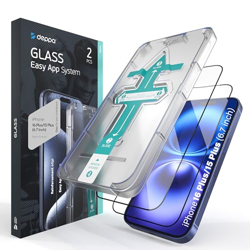 Deppa [2 Pack] Skärmskydd för iPhone 16 Plus/15 Plus (6.7') Screen Protector Härdat Glas Full täckning med Enkel [Bubble Free] Installationskit - [Fodralkompatibel]
