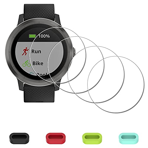 iDaPro [4 Pack] Screen Protector for Garmin Vivoactive 3 Watch (Not for Vivoactive 3 Music) + Silicone Dust Plugs Tempered Glass Anti-Scratch Bubble Free Easy Installation