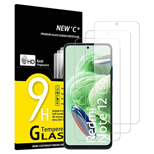 NEW'C 3 Pack, Glass Screen Protector for Xiaomi Redmi Note 12 5G/4G, Bubble Free, 9H Hardness, 0.33mm Ultra Transparent, Ultra Resistant Tempered Glass