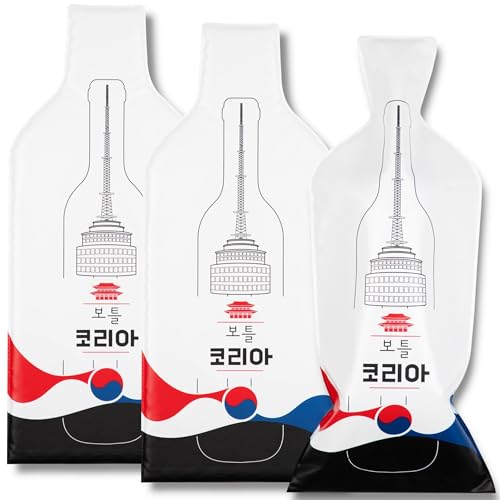 Bottle Korea | Reusable Wine Travel Protector Sleeves for Glass Bottles | Impact & Leak Resistant | Carrier Bag Luggage | Airplane Cruise Car | Gift Holiday Vacation Party | 3 Pack w/3 Bubble Wraps