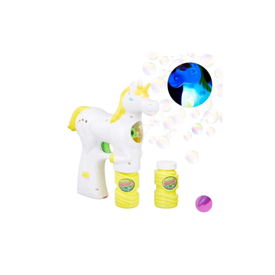 Tvålbubbelmaskin, KETIEE Enhörning tvålbubbelpistol barn, tvålbubblor pistol med 6 tvålbubblor vätska, Bubble gun Machine med ljus enhörning tvålbubblor leksak födelsedagsfest blå