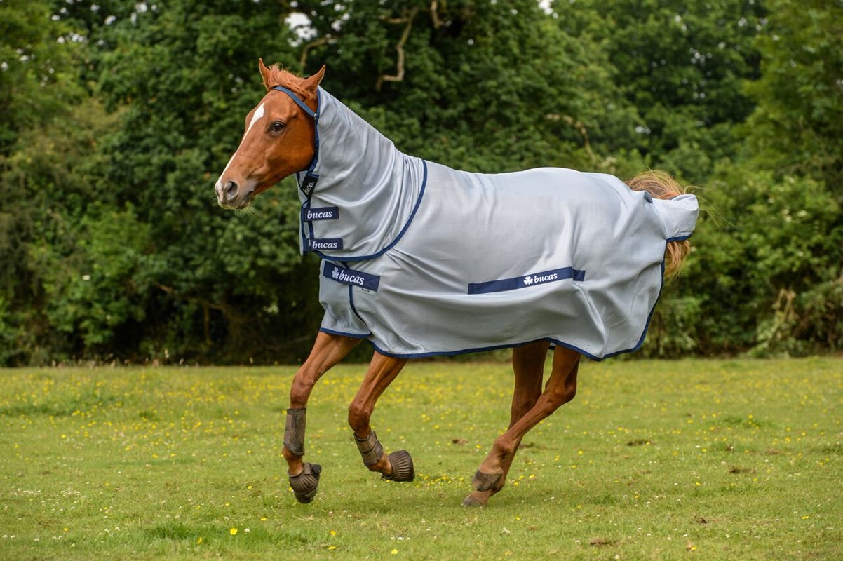 Bucas Buzz-Off Full Neck Flugtäcke Helhals Silver/Blue 105