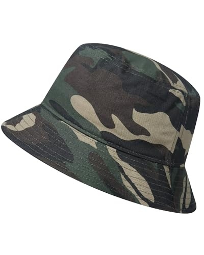 GADIEMKENSD Cotton Bucket Hat for Women Summer Beach Sun Protection Bucket Hats for Men Trendy Lightweight Packable Outdoor Travel Hat for Golf Hiking Fishing Camping Camo Army Green