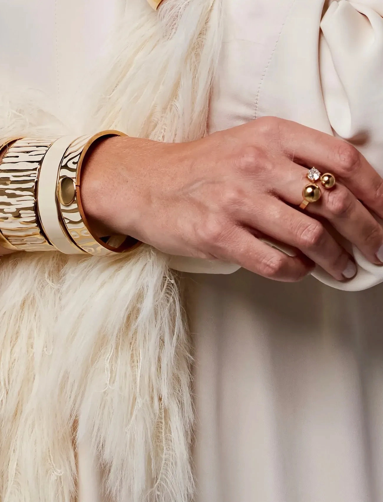 Bud to rose Brea Enamel Ring Ivory/Black/Silver - Gold - ONE SIZE