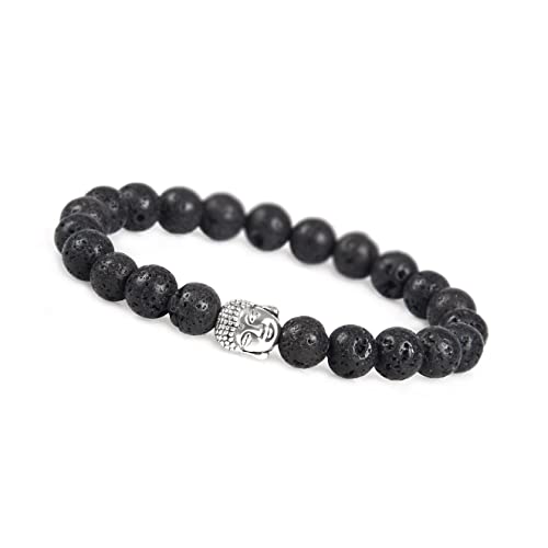 Buddha-armband för män och kvinnor I Armband med äkta 8 mm Lavasten pärlor I Yoga- och meditationsbollarmband