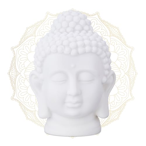 Relaxdays Buddha-huvud, plast, Buddhafigur, HBT: 17 x 12 x 10 cm, zendekoration för vardagsrum och badrum, Feng Shui-dekoration, vit