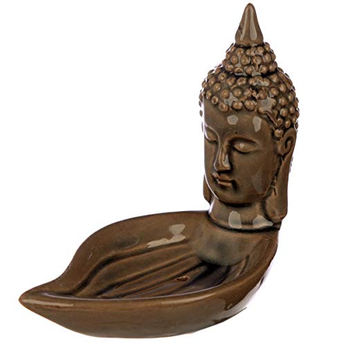 Eden Thai Buddha huvud och blad rökelsehållare, keramik, multi, höjd 10 cm bredd 6 cm djup 11 cm