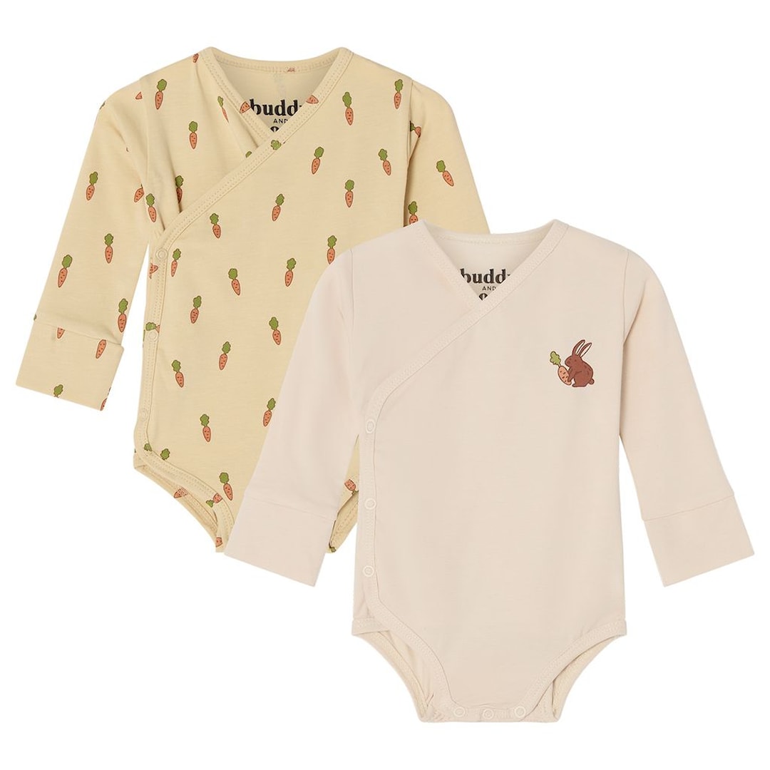 Buddy & Hope Max GOTS 2-pack Mönstrade Omlottbodys Carrots/Bunny 50/56 cm Vit 50/56 cm unisex
