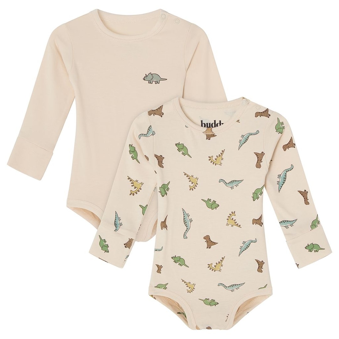 Buddy & Hope GOTS Petter Body 2-pack Off White / Dinosaur 74/80 cm Vit Djur 74/80 cm unisex