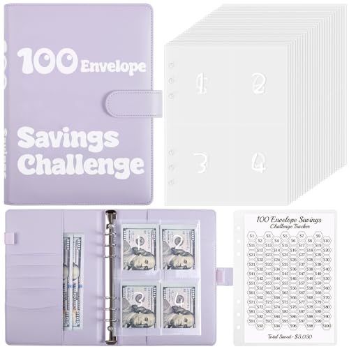 100 budgeteringsplanerare och sparande utmaningar budgetbok, kuvert utmaning pärm för att spara 5 050 $, sparpärm med kontantfickor