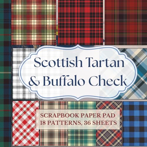 Scottish Tartan & Buffalo Check Scrapbook Paper Pad, Classic Plaid Patterns: Scotland Decorative Background Craft Paper with 18 Designs (36 Sheets, 8.5x8.5 inch) for Card Making, DIY and Collage