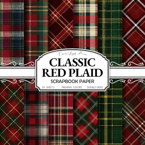 Classic Red Plaid Scrapbook Paper: 20 Double-Sided 8.5 x 8.5 Tartan and Buffalo Check Sheets in Red, Green & Gold for Holiday Crafts, Junk Journals, Collage & Card Making