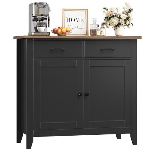 GIANTEX Madia Modernt vardagsrum, köksö, bufféskåp med 2 lådor och justerbar hylla, multifunktionsskåp för vardagsrum, kök, kontor, 100 x 40 x 78 cm (svart)