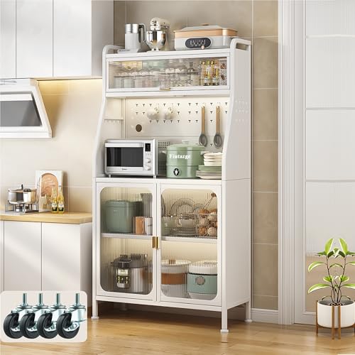Fiutazge 160 cm köksskåp, högskåp, köksbuffé med hjul, bufféskåp med justerbara hyllor och synliga dörrar, matskåp, multifunktionsskåp, vitrinskåp, 66 x 36 x 160 cm