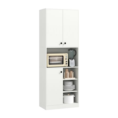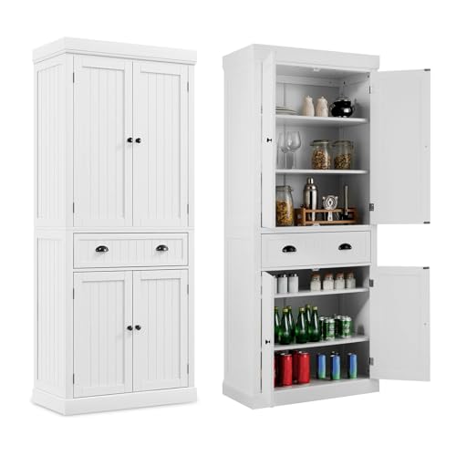 GOPLUS 183 cm högt köksskåp med 4 dörrar, bufféskåp, förvaringsskåp med låda och justerbara hyllor, fristående skänk för matsal, vardagsrum, hall, 76 x 40 x 183 cm (vit)