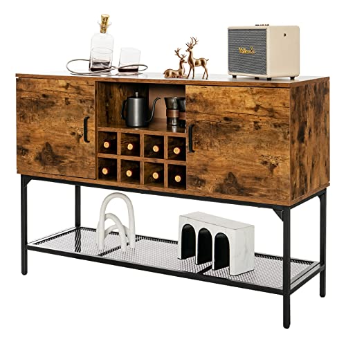 KOMFOTTEU Vinställ för kök, industriellt skåp med avtagbar hylla med 11 flaskor och kopphållare, bufféskåp med 2 nätdörrar och anti-mögel, för matsal, vardagsrum