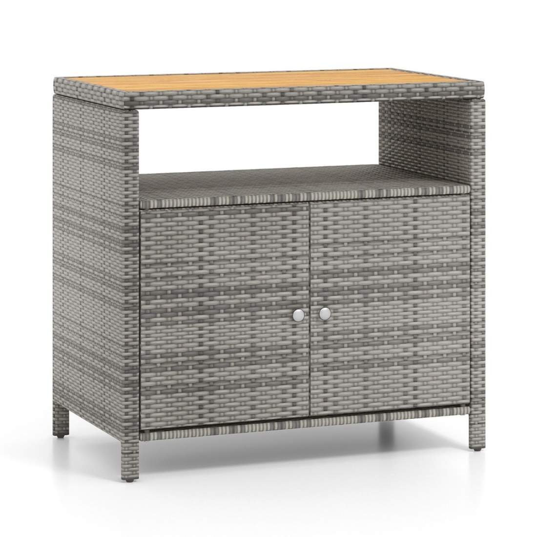 Trädgårdsskåp i rotting med bänkskiva i akaciaträ & öppet fack bufféskåp grått