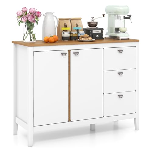 COSTWAY Köksskåp med 2 dörrar och 3 lådor, skänk, vit av trä, bufféskåp fristående med justerbara hyllor, förvaringsskåp för vardagsrum, matsal, 106 x 40 x 80 cm